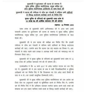 उन्होंने मुख्यमंत्री यादी निर्देश दिया है कि अभियान चलाकर माहौल खराब करने वाले तत्वों को बेनकाब कर इस प्रकार साजिश रचने वालों के विरुद्ध प्रभावी कार्यवाही की जाए गोकशी के बारे में प्रेस नोट में कई बार जिक्र है इसकी जिक्र करते हुए लिखा गया है मुख्यमंत्री जी ने इस घटना की समीक्षा कर निर्देश दिए कि इसकी गंभीरता से जांच कर गौ का सीमित सभी व्यक्तियों के विरुद्ध कठोरतम कार्रवाई की जाए
