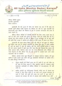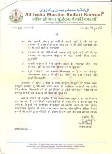 (मुस्लिम बेदारी कारवां की ओर से दिया गया ज्ञापन )