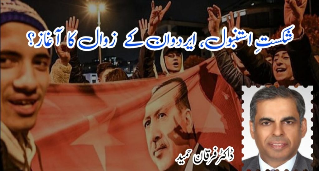 صدر ایردوان نے اپنے سیاسی سفر کا آغاز بھی استنبول میں پہلی بار 1994ء میں اس تاریخی شہر کا میئر منتخب ہوتے ہوئے کیا تھا۔ انھوں نے اپنے چند ساتھیوں کے ہمراہ 2001ء میں مرحوم نجم الدین ایربکان کے خلاف علمِ بغاوت بلند کرتے ہوئے جسٹس اینڈ ڈولپمینٹ پارٹی کی بنیاد رکھی تھی اور وہ 2003ء سے 2014ء تک ترکی کے وزیراعظم رہے اور ملک میں صدارتی نظام سے متعلق 16 اپریل 2017ء کو ریفرنڈم میں کامیابی حاصل کرنے کے بعد 24 جون 2018ء کو کروائے جانے والے پہلے صدارتی انتخابات میں باون فیصد ووٹ حاصل کرتے ہوئے 2023 ء تک اپنے عہدہ صدارت پر جمان رہیں گے لیکن استنبول کے مئیر شپ کے انتخابات جن میں صدر ایردوان کی جماعت کو ناکامی کا منہ دیکھنا پڑا ہے کیا ان کو قبل از وقت انتخابات پر مجبور نہیں کردے گی ؟ اور کیا اس شکست سے صدر ایردوان کے زوال کا آغاز تو نہیں ہو جائے گا؟