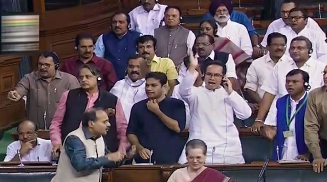 لوک سبھا میں بدھ کو ایوان کی کارروائی شروع ہوتے ہی کانگریس اور دیگر اپوزیشن پارٹیوں کے اراکین نے اس مسئلے پر ہنگامہ شروع کردیا اور ایوان کے بیچ و بیچ آکر نعرے بازی اور ہنگامہ کرتے رہے۔ اسپیکر اوم برلا نے شورو غل کے دوران ایوان کی کارروائی جاری رکھی اور ہنگامے کے درمیان وقفہ سوالات جاری رہا۔