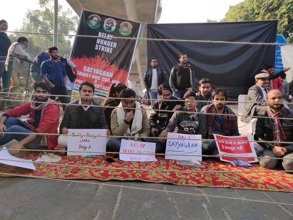 اس سے قبل بدھ کو جامعہ کے طلبہ گاندھی گیری پر اتر آئے اور اپنے مطالبات کو لے کر بھوک ہڑتال پر بیٹھ گئے ہیں۔ ان کا مطالبہ سی اے اے اور این آر سی، این پی آر کو واپس لیاجا ئے، پورے ملک میں جہاں جہاں بھی لوگوں کی شہادتیں ہوئی ہیں اس کی تحقیقات کی جائے، سبھی گرفتار مظاہرین کو رہا کیاجائے جو تشدد میں شامل نہیں تھے، تمام ایف آئی آر کو واپس لیاجائے جو پرامن مظاہرین کے خلاف ہوئی ہیں، ان سبھی لوگوں کو فوری طور پر معاوضہ دیاجائے جو تشدد کے شکار ہوئے ہیں وغیرہ شامل ہیں۔ قبل ازیں گزشتہ روز مشہور فلمی اداکارہ سورا بھاسکر اور دیگر معزز شخصیات نے مظاہرین کو خطاب کیا تھا او ر ملک وآئین بچانے کی لڑائی میں ہرممکن مدد کی یقین دہانی کرائی تھی۔ اس موقع پر سورا بھاسکر کو جامعہ ملیہ اسلامیہ کورآڈی نیٹر کمیٹی کی جانب سے کتاب پیش کی گئی تھی۔