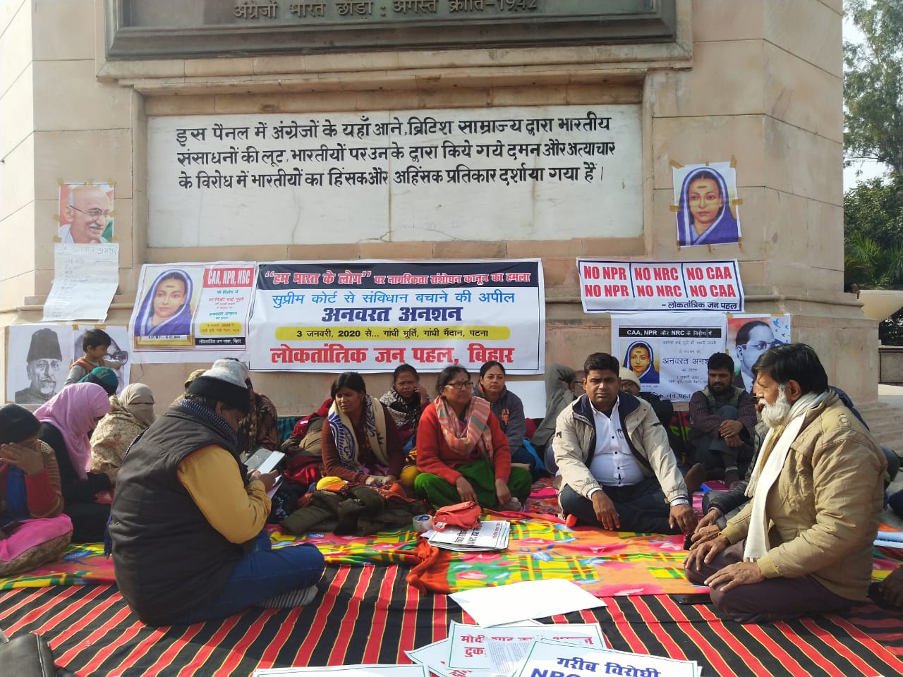 شہریت ترمیمی قانون کے ذریعہ مودی حکومت نے پارلیمنٹ میں اپنے اکثریت کا غلط استعمال کرتے ہوئے عوام کی خودمختاری کے خلاف جاکر قانون بنایا ہے ۔ اسلئے سپریم کورٹ سے ہماری اپیل ہے کہ آئین اور عوام کی خودمختاری کی حفاظت کرے ۔ پریس ریلیز میں کہا گیا ہے کہ شہریت ترمیمی قانون کی بنیاد پر قومی آبادی رجسٹر بنانا خطرناک ہوگا۔ اس سے نہ صرف ملک و سماج ٹوٹے گا بلکہ کروڑوں دلت۔ پسماندہ کی شہریت کے حق سے محروم کردئے جائینگے ۔ نتیجہ یہ ہوگا کہ انہیں سرکار سے سہولت حاصل کرنے کا کوئی حق نہیں ہوگا، انکی جگہ ڈٹینشن کیمپ ہوگا۔ ریلیز میں یہ بھی کہا گیا ہے کہ حکومت کو ملک کی عوام سے شہریت کا ثبوت مانگنے کا کوئی حق نہیں ہے ۔ مقام انشن پر دیگر اہم لوگوں میں ڈاکٹر احمد عبد الحئی، انوارالہدیٰ، روپیش، ڈاکٹر ایم اے ابراہیمی، پرتیما کماری، مالا داس ایڈووکیٹ، سابق اسمبلی اسپیکر ادئے نارائن چودھری، شمس الدین ایڈووکیٹ، رضوان احمد، ضیاءالقمر، ریاض عظیم آبادی، افضل حسین، ساوتری دیوی ایڈووکیٹ، انگد سنگھ، روپیش کمار، منی شانڈیال، سسٹر لیما روز، دگوجئے رائے، نفیسہ فاطمہ، ارشاد الحق، ستیدنر شرما ایڈووکیٹ، ویریش پرساد سنہا، منہر کرشن اتل، شیندر پرتاپ سنگھ ایڈووکیٹ، ہدیٰ شہزاد، طہور انور، آفاق احمد،وغیرہ بھی موجود رہے ۔ آج کا انشن ایڈووکیٹ مالا داس، سسٹر لیما، پرتیما کماری اور زاہدہ اور سبھی معروف سماجی کارکنان کے ذریعہ کھجور اور گرم چائے پلاکر انشن کو ختم کیا گیا اور یہ انشن کئی دنوں تک چل سکتا ہے ۔ لوک تانترک جن پہل کی کنچن بالا اور دوسرے معروف اداروں کے ذمہ داران نے ہندوستان کے شہریوں سے اپنے آئین کی حفاظت کیلئے اس اہم پروگرام میں شامل ہونے کی اپیل کی ہے ۔