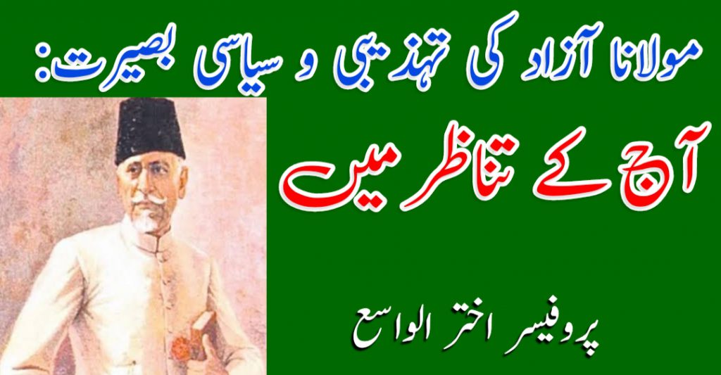مولانا آزاد (پیدائش مکہ مکرمہ ۱۱نومبر ۱۸۸۸:وفات دہلی ۲۲فروری ۱۹۵۸ء)کو تاریخ کے ایک ایسے لمحے میں پیدا ہوئے جب ساری دنیا ایک زبردست سماجی، اقتصادی، سیاسی اور تہذیبی کش مکش سے دو چار تھی۔ تاریخ و تہذیب کا ایک عہد ختم کر دوسرا دور شروع ہو رہا تھا۔ یہ اتھل پتھل سب سے زیادہ شدت کے ساتھ یورپ میں ظاہر ہو رہی تھی جہاں ایک طرف سلطنت عثمانیہ کی صورت میں اسلامی تاریخ کا ایک خاص زمانہ اپنی آخری سانسیں لے رہا تھا اور یورپ کی ساری طاقتیں اس زوال میں شریک تھیں اور اسے تیز تر کرنے کی کوشش کر رہی تھیں۔ ساری اسلامی دنیا میں مغرب مخالف جذبات کا ایک حشر برپا تھا جس کی گونج سب سے زیادہ ہندوستان میں سنائی پڑ رہی تھی۔ اسی کے ساتھ یورپ کی مختلف طاقتیں خود آپس میں بھی برسرِ پیکار تھیں جس کا سبب صنعتی انقلاب اور نو آبادیات کاری کے نتیجے میں پیدا ہونے والی وہ مسابقت تھی جو سیاسی مفادات کے تصادم کی شکل میں ظاہر ہو رہی تھی۔ یہ تصادم اور کشمکش بہت جلد پہلی عالمی جنگ کی صورت میں سامنے آئی۔ تہذیبی سطح پر یہ انیسویں صدی کی بے قید عقلیت پرستی کے نشے کے اتار کا زمانہ تھا۔ جس کے نتیجے میں ساری مغربی تہذیب زبردست سماجی انتشار اور روحانی فساد میں مبتلا ہو گئی تھی۔