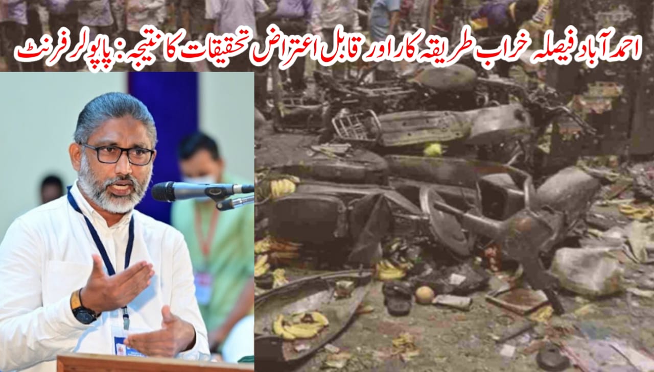 پاپولر فرنٹ آف انڈیا کے چیئرمین او ایم اے سلام نے کہا کہ احمدآباد بم دھماکہ معاملے میں خصوصی عدالت کا فیصلہ خراب طریقہ کار، قابل اعتراض تحقیقات اور ظالمانہ قوانین کا نتیجہ ہے۔