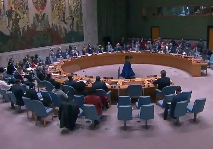 اقوام متحدہ سیکورٹی کونسل کے ذریعہ دیر رات طلب کیے گئے اجلاس میں بحث کے دوران امریکہ نے روسی حملے کی مذمت کرتے ہوئے روسی صدر پوتن پر پابندی عائد کرنے کی بات کہی۔ برطانیہ نے اس اجلاس میں الزام لگایا کہ روسی ٹینک عام شہریوں کو کچل رہے ہیں۔ ہندوستان نے اس موقع پر انتہائی متوازن رخ اختیار کرتے ہوئے سبھی متنازعہ ایشوز کو بات چیت کے ذریعہ حل کرنے پر زور دیا۔ ہندوستان نے کہا کہ اس بات سے افسوس ہے کہ سفارتی راستہ ترک کر دیا گیا ہے، ہمیں اس پر لوٹنا ہوگا۔
