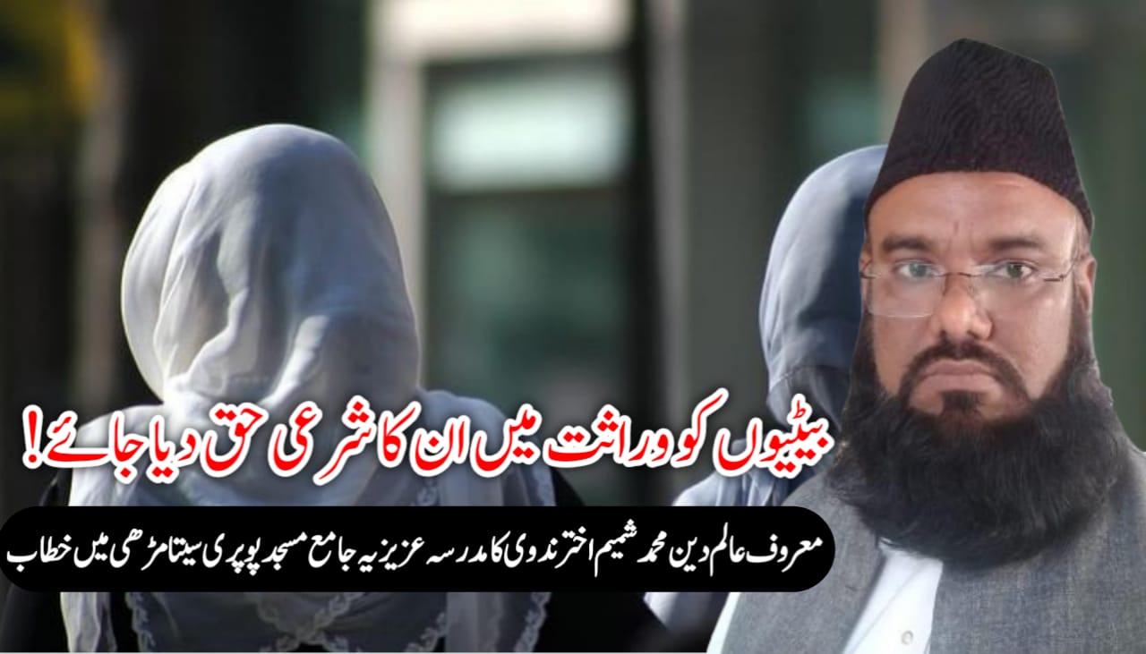 سیتامڑھی: وراثت میں بیٹیوں کا حق اللہ نے مقرر فرمایا ہے بلکہ بڑی تاکید کے ساتھ تقسیم وارثت کی تفصیلات قرآن کریم مذکور ہیں،جو لوگ اس نظام وراثت سے روگردانی کرتے ہوئے بیٹیوں اور بہنوں کو محروم کرتے اور نہیں دیتے ہیں درحقیقت وہ اپنی ساری عبادتوں کے باوجود خود کو جنت سے محروم کررہے ہیں،اللہ کے رسول صلی اللہ علیہ وسلم نے فرمایا کہ جو لوگ اپنے ورثا کو وراثت سے محروم کرتے ہیں جسے اللہ نے فرض قرار دیا ہے اللہ تعالیٰ ان کو جنت کی وراثت سے محروم فرمادے گا، یہ وہ باتیں ہیں جو ملک کے مشہور عالم دین و خطیب اور المعھد الاسلامی للبنات رائپور ضلع سیتامڑھی بہار کے ناظم و بانی حضرت مولانا محمد شمیم اختر ندوی مدرسہ عزیزیہ جامع مسجد پوپری میں نمازِ جمعہ سے پہلے فرما رہے تھے، موصوف نے اپنی بات کو آگے بڑھاتے ہوئے فرمایا کہ قران کریم میں آیات وراثت کا آغاز یوصیکم اللہ سے ہوا ہے جس کا مطلب ہے کہ اللہ تمہیں وصیت کرتا ہے اور اس کے اختتام پر اسے حدود اللہ قرار دیا ہے اور یہ بتایا گیا ہے کہ جو لوگ ان حدود اللہ پر عمل کرتے ہیں اللہ انہیں ایسی جنت عطاء فرمائے گا جس کے نیچے نہریں جاری ہونگی اور وہ ہمیشہ ہمیش اس میں رہینگے ، اس کے بر خلاف جولوگ ان حدود اللہ کی پامالی کرتے ہیں، اللہ ان کو ہمیشہ ہمیش کیلئے داخل جہنم فرمائیگا، آیات کی ابتدا و انتہا سے اس کی اہمیت کا اندازہ بخوبی لگایا جاسکتا ہے، سرور کائنات صلی اللہ علیہ وسلم نے فرمایا کہ علم میراث سیکھو اور سکھاؤ، یہ نصف علم ہے، ایک وقت ایسا آئیگا کہ لوگ تقسیم وراثت میں لڑینگے اور اس کا فیصلہ کرنے والا کوئی نہیں ملیگا،میری امت سے سب سے پہلے علم میراث ہی اٹھایا جائیگا، یہ حدیث بھی اس کی اہمیت کو سمجھنے کیلئے کافی ہے،لوگ سمجھتے ہیں کہ بہن بیٹی کی شادی میں سامان جہیز اور کچھ نقد دیکر ہم وراثت کی ادائیگی سے بری الذمہ ہوگئے یہ ان کی بھول ہے،جتنا بھی شادی بیاہ خرچ کردیا جائے یہ وراثت کا بدل نہیں ہوسکتا، اس لئے کہ یہ شریعت کے مزاج کے خلاف کام ہے، ہندو مت تہذیب میں چونکہ لڑکیوں کا وراثت میں کوئی حق نہیں تھا اس لئے لوگ بچیوں کی شادی کے موقع پر کنیا دان کے طور سامان جہیز دیا کرتے تھے، آج بھی ہم لوگ اسی تہذیب کو اپنائے ہوئے ہیں اور شرعی اصولوں سے حددرجہ دور ہیں، اللہ واسطے اپنی بیٹیوں اور بہنوں کو اس کے حق سے محروم نہ کیجئے، کیونکہ یہ فرض ہے اور فرض کے بارے میں روز محشر بڑی سختی کے ساتھ بازپرس کی جائیگی، حضرت مولانا قاضی مجاھد الاسلام قاسمی رحمہ اللہ علیہ بڑے درد کے ساتھ کہا کرتے تھے کہ لوگو جہیز ہٹاؤ اور وراثت کو رواج دو،کاش کہ ہم لوگ اس پر عمل پیرا ہوجاتے، والدین کو چاہیے کہ اپنی زندگی میں بار بار اپنی بیٹیوں کے وراثت کے بارے میں اپنی اولاد کو تاکید کرتے رہا کریں اور اگر اندیشہ ہو تو اپنی زندگی میں ہی اپنی بیٹیوں کا شرعی حق اس کے حوالے کردیں، میت کے متروکہ مال میں سے تجہیز و تکفین، میت کے قرض،اور ایک تہائی سے ان کی وصیت کو پورا کرنے کے بعد ان کی اولاد و بیوہ کے درمیان تقسیم وراثت کا عمل شروع ہوگا اور ایک جنس کی اولاد کی صورت میں دوسرے اقارب بھی مستحق وراثت ہونگے، بعض لوگ بسا اوقات لاعلمی کی وجہ سے یہ کہتے دکھائ دیتے ہیں کہ بیٹوں کو بیٹیوں کے بالمقابل ڈبل حصہ کیوں دیا جاتا ہے ،ان کی غلط فہمی کو دور کرنے کیلئے صرف اتنا عرض ہے کہ لڑکیوں کے سارے اخراجات کی ذمہ داری اس کے شوہر پر عائد ہوتی جبکہ لڑکوں کو اپنی بیوی و اولاد کے اخراجات بھی برداشت کرنا پڑتا ہے ،اگر صرف اسی حکمت پر غور کرلیا جائے تو بات آئینہ کی طرف صاف ہوجاتی ہے۔