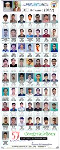 جے ای ای ایڈوانسڈ میں کل 146 طلبہ و طالبات نے شرکت کی، جس میں سے 57 طلبہ وطالبات کوالیفائی ہوئے۔ کامیاب ترین کوالیفیکشن کے علاوہ آل انڈیا رینک(کٹیگری) 260 رہا اور آل انڈیا (جنرل) رینک 2375 رہا۔
