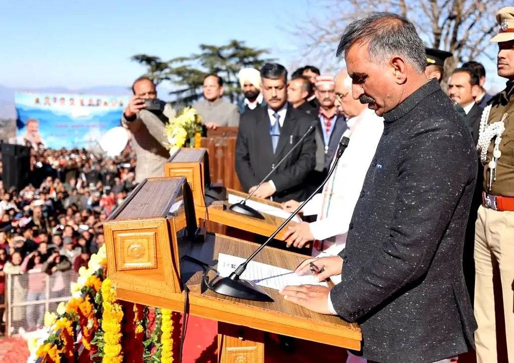 شملہ: ہماچل پردیش میں نئی حکومت وجود میں آ گئی ہے۔ شملہ کے تاریخی ریج میدان میں کانگریس پارٹی کی نئی حکومت کی حلف برداری کی تقریب کا اہتمام کیا گیا۔ گورنر آر وی ارلیکر نے سکھوندر سنگھ سکھو کو عہدے اور رازداری کا حلف دلایا۔ ساتھ ہی مکیش اگنی ہوتری نے بھی ریاست کے نائب وزیر اعلیٰ کے طور پر حلف لیا۔ ریاستی کابینہ کے پہلے اجلاس میں ہی عوام کو سوغات ملنے والی ہے، یہ خوشخبری خود نائب وزیر اعلی مکیش اگنی ہوتری نے دی۔