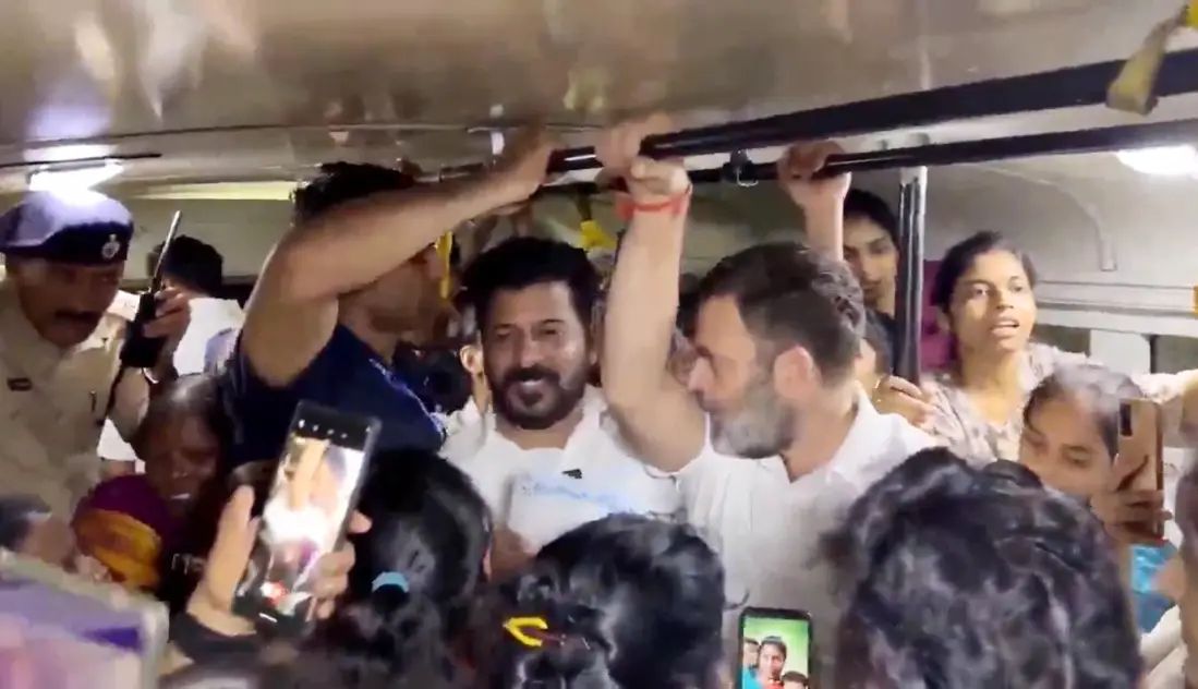 جمعرات کی شب ایک جلسہ عام سے خطاب کرنے کے بعد راہل گاندھی نے گریٹر حیدرآباد میں سرکاری بس میں سفر کیا۔ اس دوران راہل کے ساتھ ریاست کے وزیر اعلیٰ اے ریونت ریڈی بھی موجود تھے۔ راہل گاندھی ملکاجگیری لوک سبھا حلقہ کے سرور نگر میں جلسہ عام کے بعد تلنگانہ اسٹیٹ روڈ ٹرانسپورٹ کارپوریشن (ٹی ایس آر ٹی سی) کی بس پر سوار ہوئے۔ بس میں راہل گاندھی نے ریاست میں کانگریس حکومت کی طرف سے مفت بس سفر کی اسکیم کے نفاذ کے بارے میں جانکاری لی۔