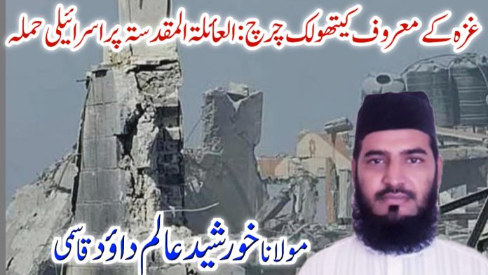 غزہ گزشتہ اکیس مہینوں سے مسلسل خون میں نہایا ہوا ہے۔ امریکہ کی جانب سے صہیونی ریاست اسرائیل کو فراہم کیے گئے مہلک ہتھیاروں نے غزہ کے ہر فرد کو متاثر کیا ہے۔ ہزاروں افراد شہید ہو چکے ہیں؛ جب کہ لاکھوں زخمی اور معذور ہو چکے ہیں۔ یہ تباہی و بربادی بین الاقوامی قوانین اور جنگی ضوابط کو یکسر نظرانداز کرتے ہوئے جاری ہے۔ اس مسلسل جارحیت میں اسرائیلی حملے نے عبادت گاہوں کو بھی نشانے بنائے ہیں؛ جب کہ عبادت گاہیں مقدس مقامات سمجھے جاتے ہیں جو ہمیشہ امن، روحانیت اور پناہ کی علامت رہے ہیں۔ یہ نہ صرف جنگی جرائم کے زمرے میں آتا ہے؛ بلکہ انسانی ضمیر کے لیے ایک کڑا امتحان بھی ہے۔ حالیہ حملے میں مشرقی غزہ کا معروف کیتھولک ہولی فیملی چرچ ایک بے رحم فضائی بمباری کا نشانہ بنا۔ اس حملے نے نہ صرف غزہ کی مسیحی برادری کو سوگوار کیا؛ بلکہ پوری دنیا میں انسانیت نواز حلقوں کو جھنجھوڑ کر رکھ دیا۔