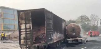 جے پور میں ٹرکوں کے تصادم سے 40 گاڑیوں میں لگی...