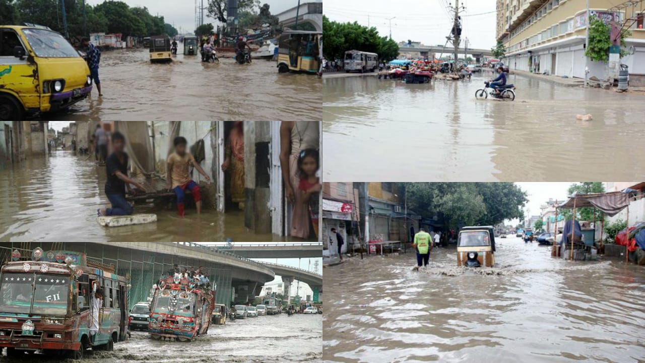 کراچی میں شدید بارش کے باعث متعدد علاقوں میں سیلابی صورتحال