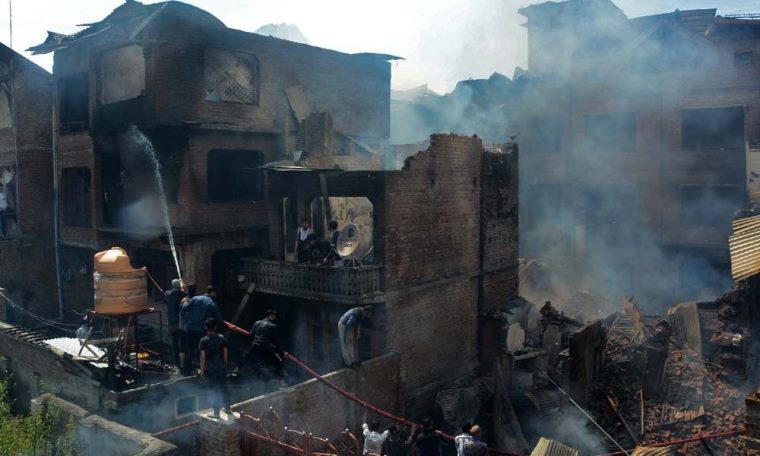 At least fifteen houses were destroyed in the gunfight between militants and the government forces in the Kanimazar neighborhood of