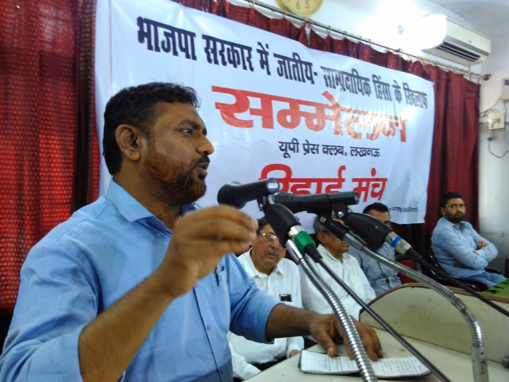 यूपी प्रेस क्लब लखनऊ में रिहाई मंच ने भाजपा के जातीय-साम्प्रदायिक हिंसा के खिलाफ किया सम्मेलन लखनऊ, 7 अप्रैल 2018.