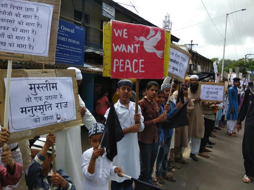 Protest against mob lynching continues in Maharashtra ,after Mumbai ,Aurangabad, Latur,Nanded ,Nasik, Beed now Hundreds of Punekars came on streets for the second time On Friday at Bopodi area to demand atrocity law to protect Muslims and immediate arrest of killer cow vigilantes under mcoca law.