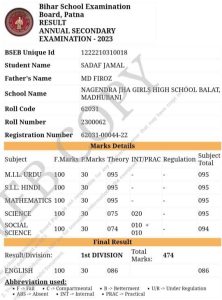 Sadaf Jamal scored 94.8% by securing 474 marks out of 500 in matriculation (10th) examination this year conducted by the Bihar School Examination Board (BSEB), the results for which were released on Friday. Sadaf Jamal is four among the six siblings, five sisters and one brother, the daughter of Haque Academy Principal Md Firoz where she studied from Nursery to 10th. She secured a position in the top 10 district level in the matric exam this year in Madhubani district.