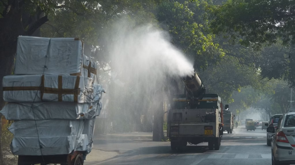 Water sprayers sprinkle mist in New Delhi for pollution control